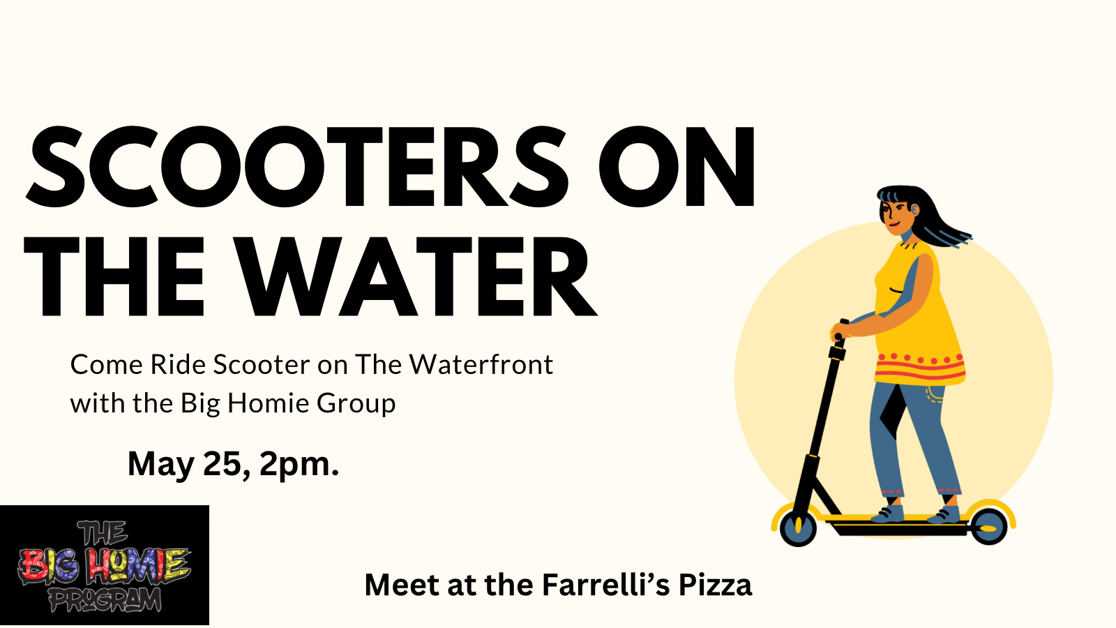 Come ride a scooter at the Waterfront with The Big Homie Group.